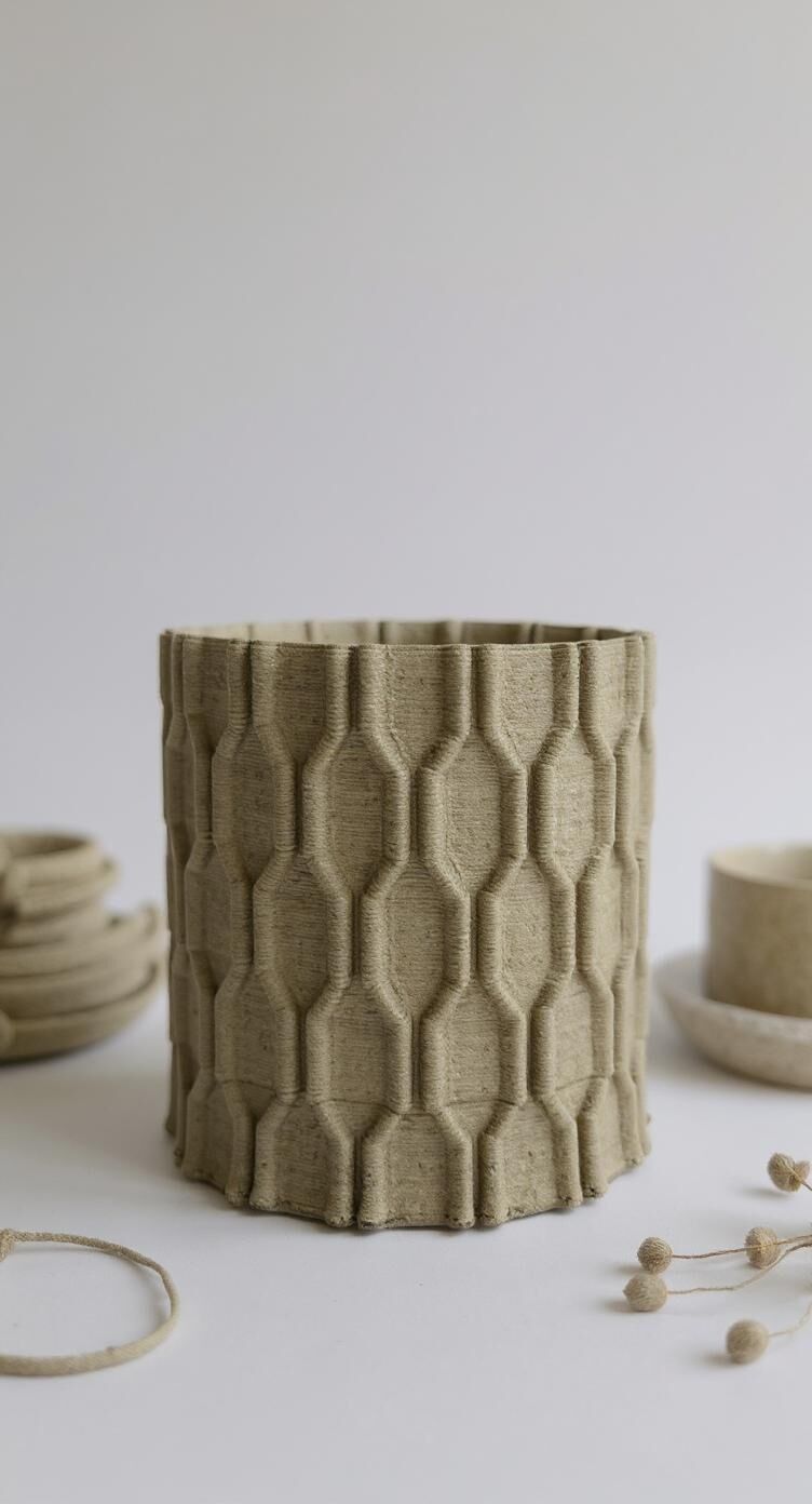 Seramiklerimizin formları, kendi stüdyomuzda tasarladığımız 3D kil yazıcısı kullanılarak milimetrik hassasiyetle şekillendiriliyor; yüzeyde gördüğünüz her katman, el yapımı sanatçılığın ince izlerini taşıyor.