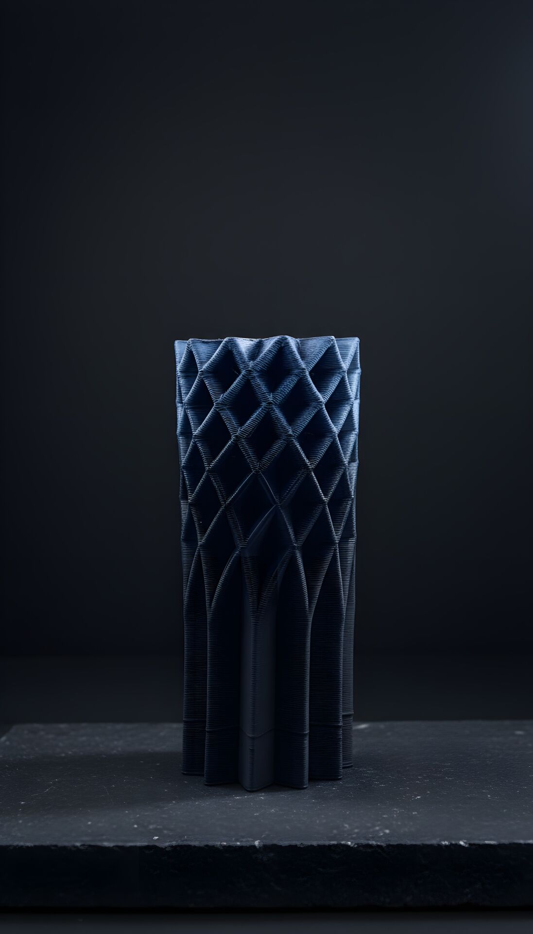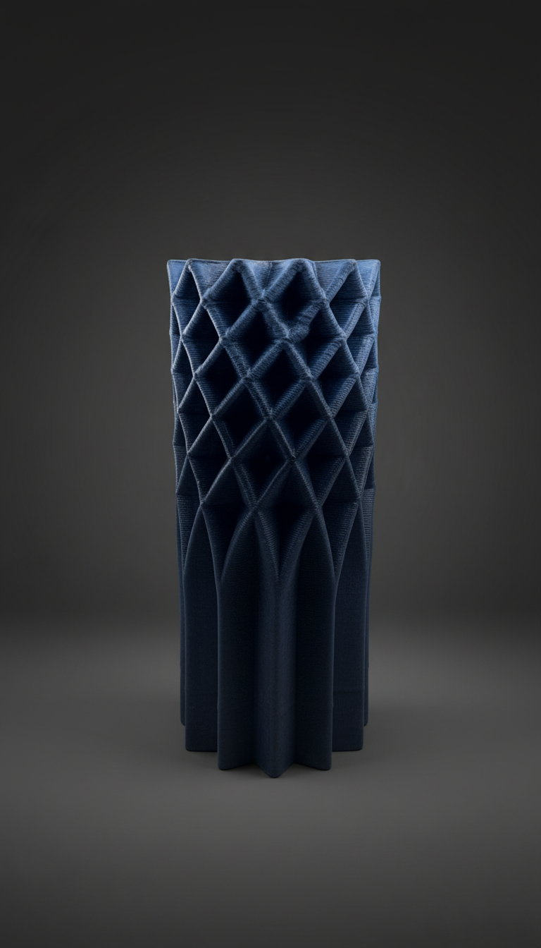 Bu vazo, 3D seramik yazıcıyla oluşturulan mimari bir dokuya sahip. Yükselen geometrik kabartılar, ışıkla birlikte derinleşen ritmik bir yüzey oluşturuyor. Sert çizgileri, modern ve heykelsi bir duruşla birleştiren dikkat çekici bir tasarım.