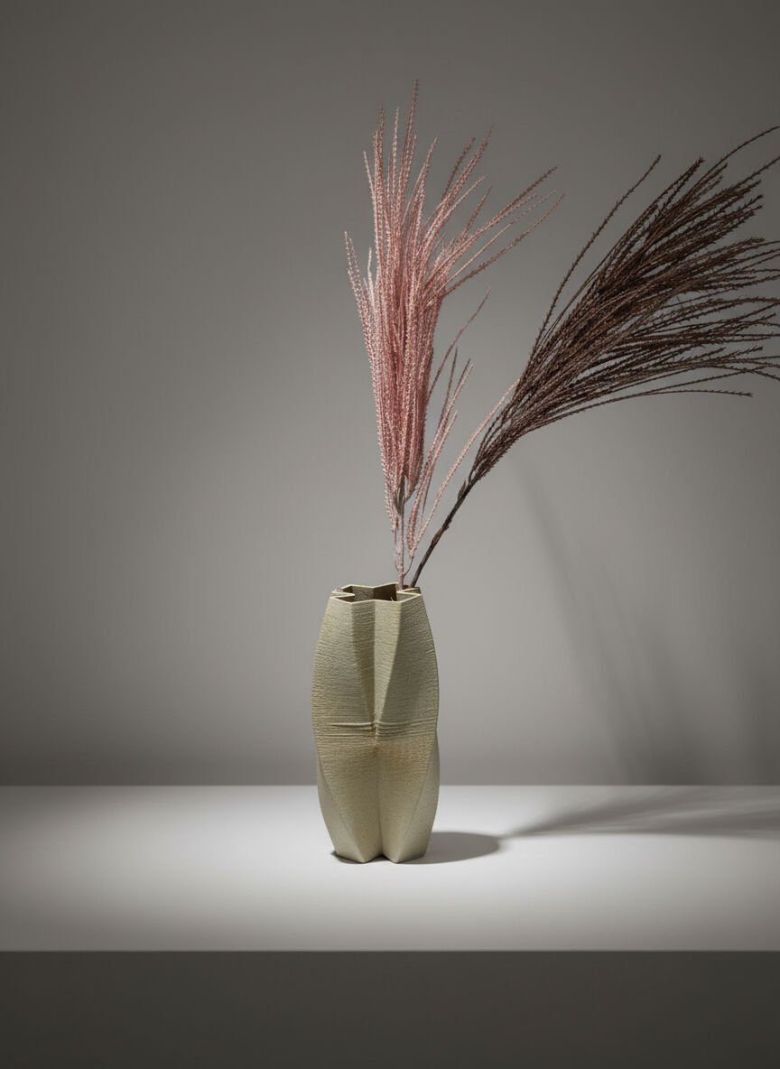 Creamic Studio’nun çağdaş tasarım anlayışıyla üretilen bu 3D baskı seramik vazo, geometrik formların yalın gücünü yansıtır.