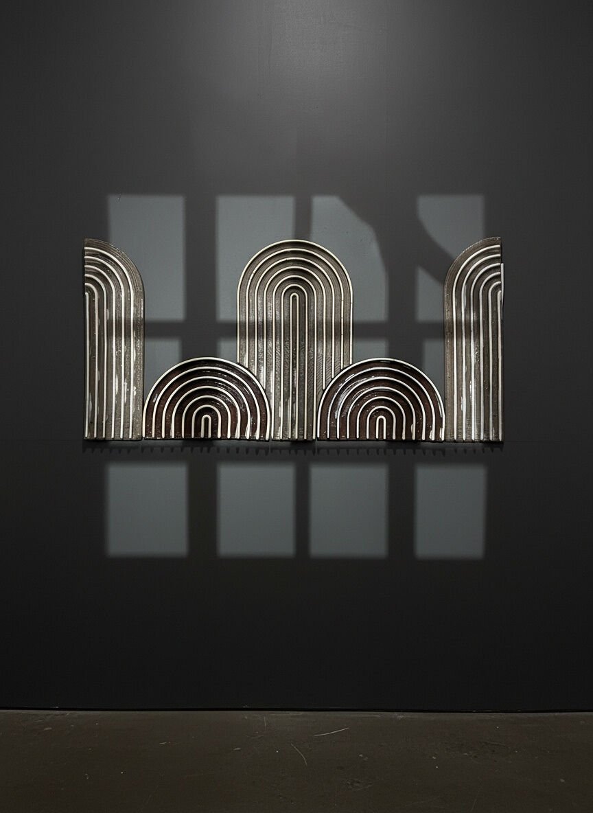 Geometrik sadelik anlayışıyla üretilen bu 3D baskı seramik tablo, mimari form diliyle ışığın gölgeyle kurduğu dengeyi yeniden tanımlar.