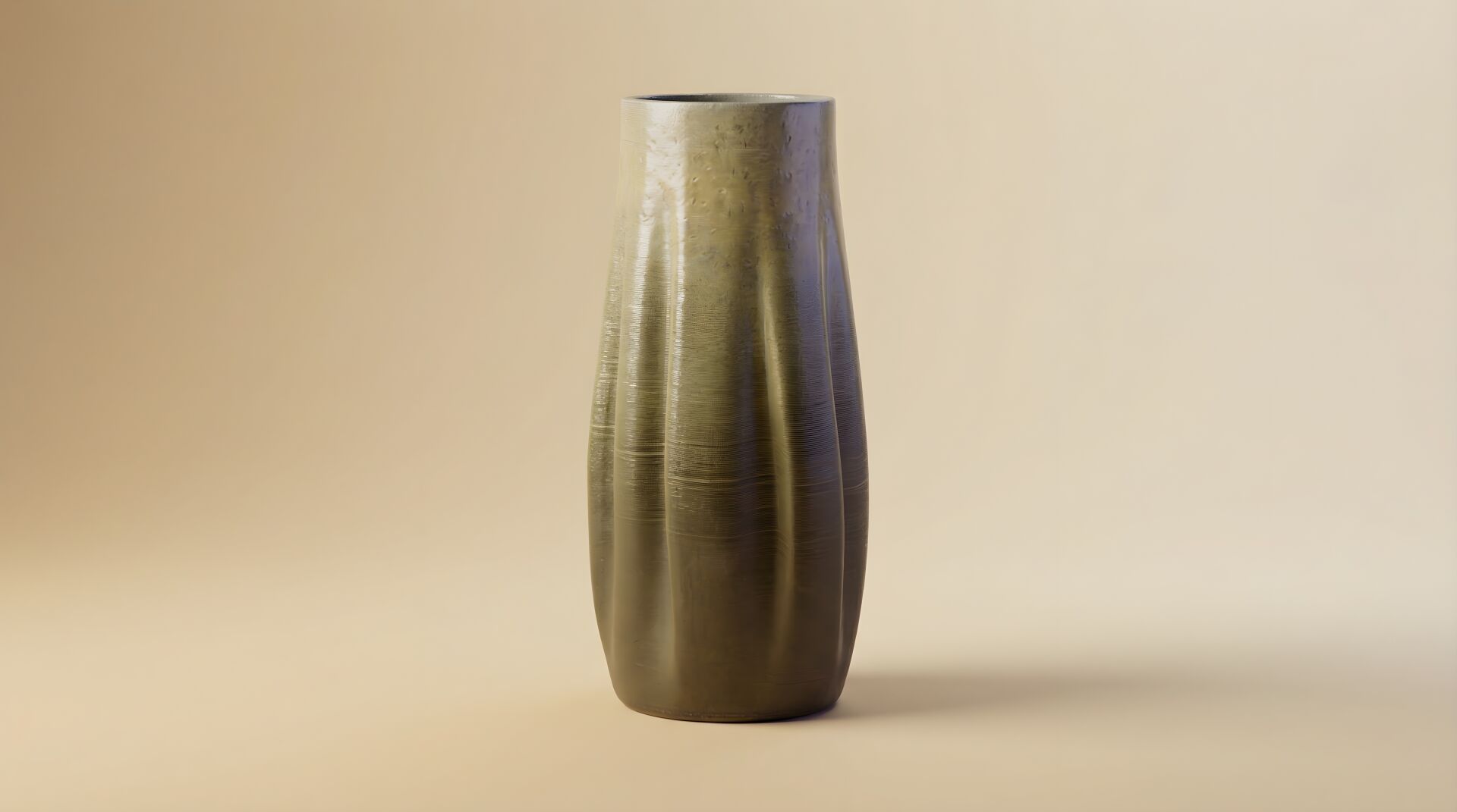 Bu vazo, 3D seramik yazıcı ile tek parça halinde yükselerek sade ama güçlü bir siluet oluşturuyor. Gövdedeki yumuşak düşen hatlar, formu minimal ama karakterli bir görünüme taşıyor.