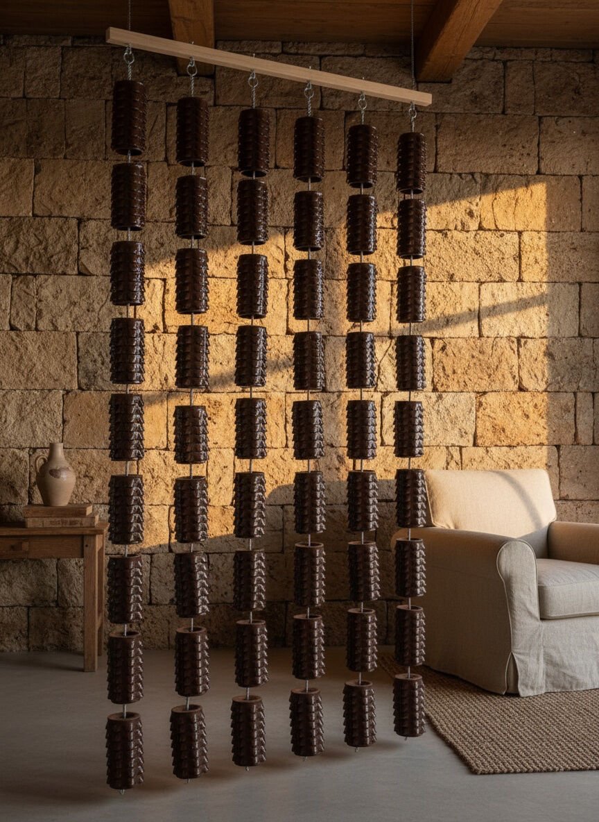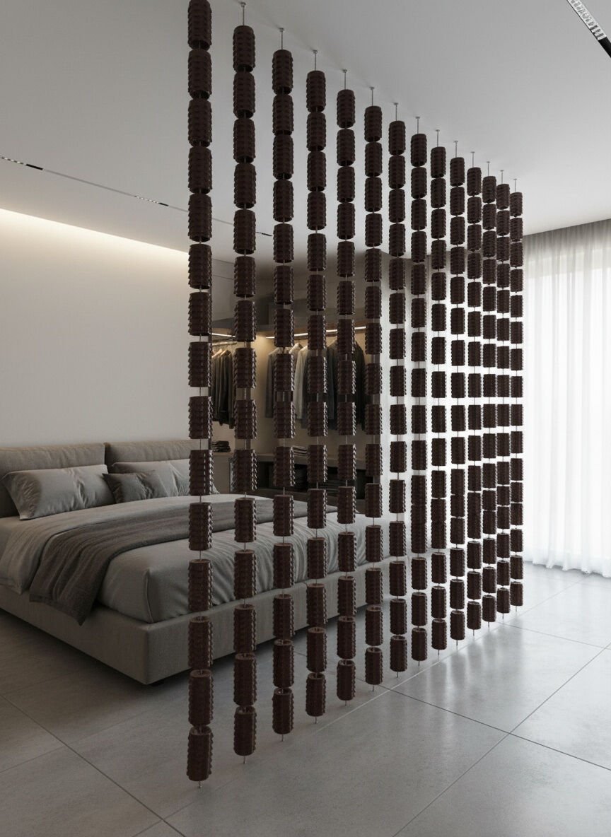 Yatak odası, salon veya ofis gibi mekanlarda hem estetik hem işlevsel bir bölücü olarak kullanılabilir.