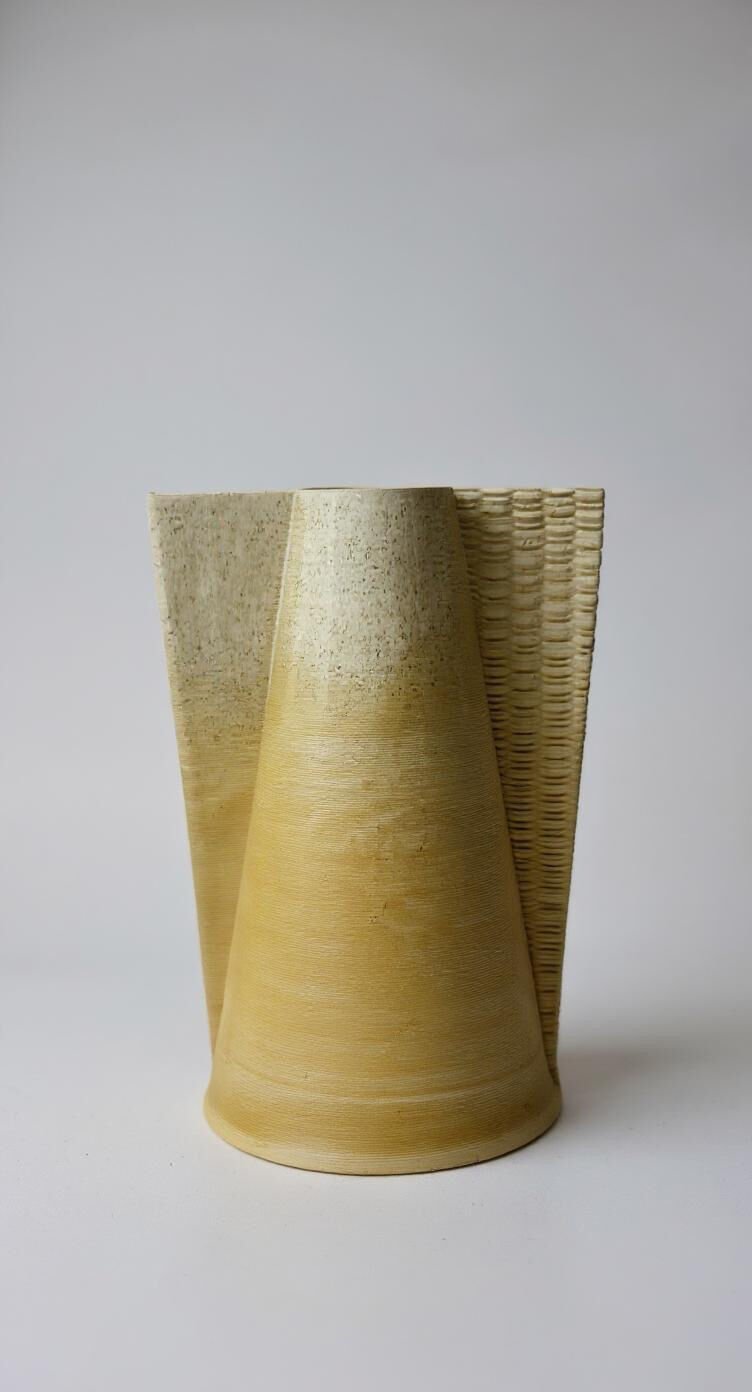 Altın sarısı tonlarının sıcaklığıyla öne çıkan bu seramik sürahi, modern formu ve yüzeyindeki dokusal detaylarıyla yaşam alanlarınıza özgün bir karakter katar. Ön yüzündeki yalın konik hatlar, arka bölümdeki dokulu yüzeyle birleşerek kontrast bir estetik oluşturur.