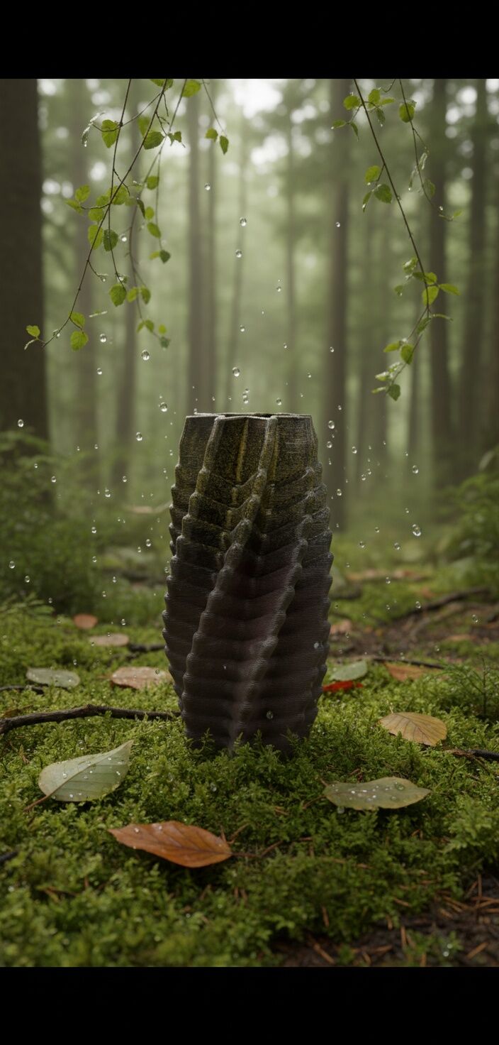 Doğanın ritmini taşıyan spiral dokusu ve heykelsi yükselişiyle bu vazo, 3D seramik baskı tekniğinin en karakteristik örneklerinden biri.
